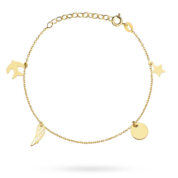 Bratara Lant cu Randunica, Banut, Stea si Aripa Inger- Aur 14k