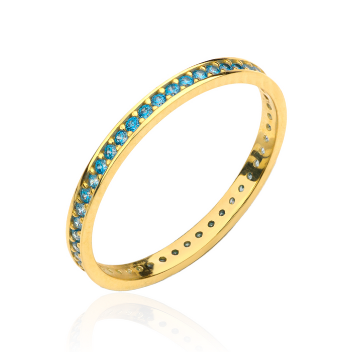 Design: Inel subțire și elegant cu cristale albastre strălucitoare.