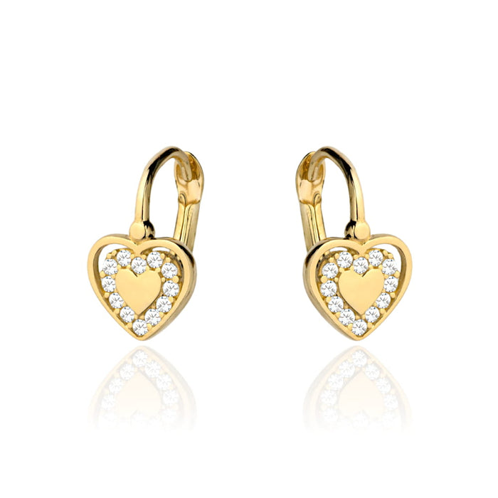 Cercei Aur 14k cu Inimioare si Zirconii Albe