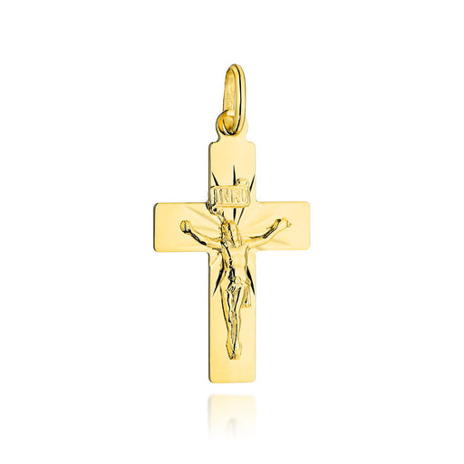 Exprimă-ți credința și devotamentul cu acest pandantiv frumos din aur 14K (585) cu imaginea lui Iisus Răstignit.